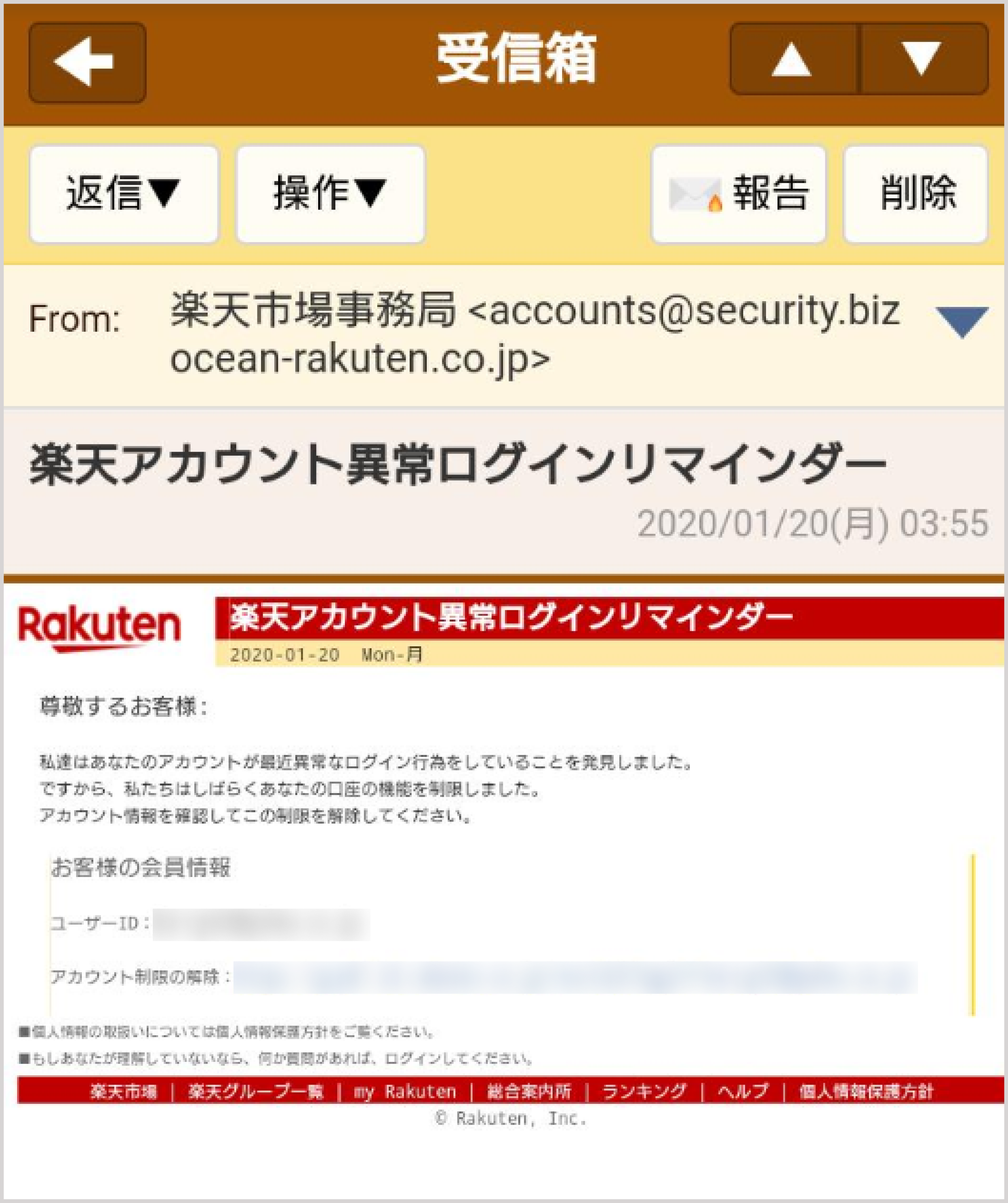楽天市場 ご注意ください 楽天を装った不審なメール ログイン通知 2020年1月20日更新