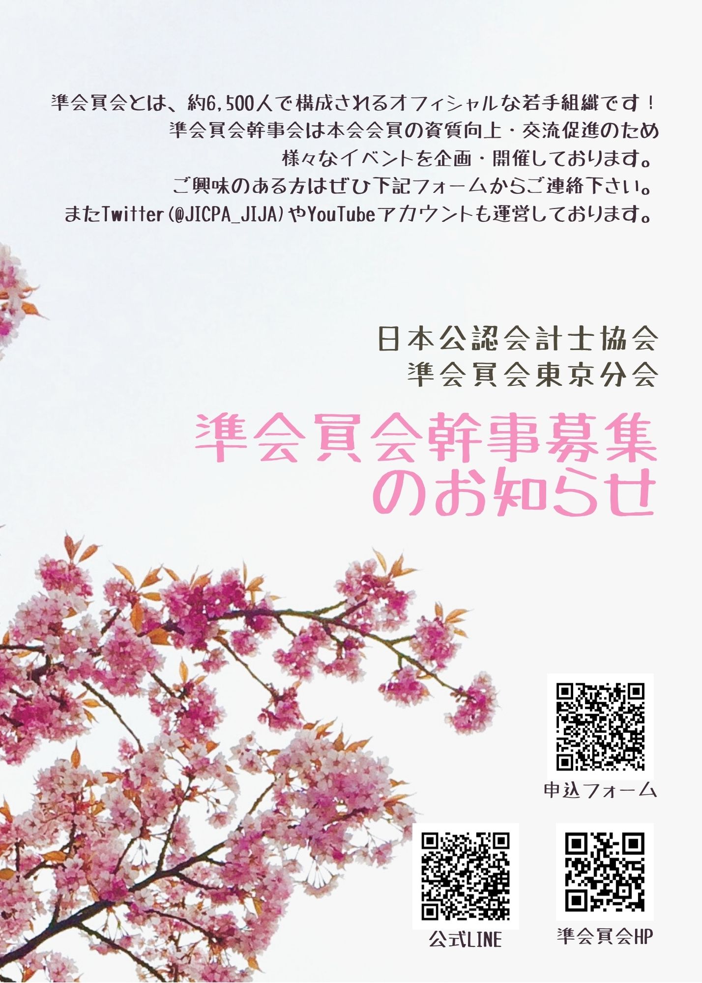 日本公認会計士協会準会員会 On Twitter 本日 東京の入所式及び会長講和にて 下記のビラを同封しております ぜひ興味ある方はご参加ください こちらのアカウントにdmいただいても大丈夫ですのでお気軽にご相談ください